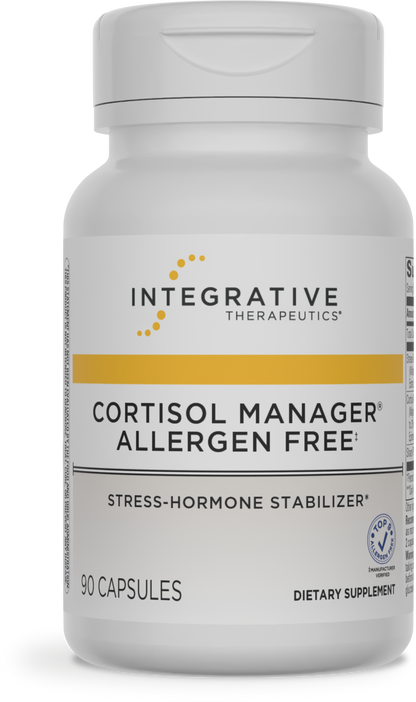 The ingredients in Cortisol Manager Allergen Free‡ support healthy cortisol levels.* Cortisol is one of the most important hormones involved in the adaptation process. By supporting balanced cortisol and a healthy stress response, Cortisol Manager Allergen Free‡ also promotes relaxation to support restful sleep.*