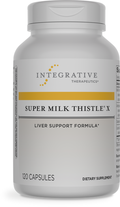 Milk thistle (Silybum marianum) extract with other supportive herbs for healthy liver support.* Super Milk Thistle X combines artichoke extract, dandelion leaf extract, and licorice root extract with a milk thistle fruit extract, standardized to contain 55% silymarin. The ingredients in Super Milk Thistle X provide support for healthy liver function.*